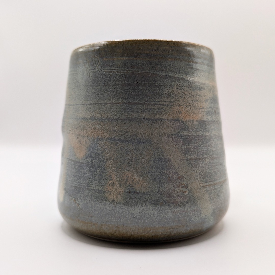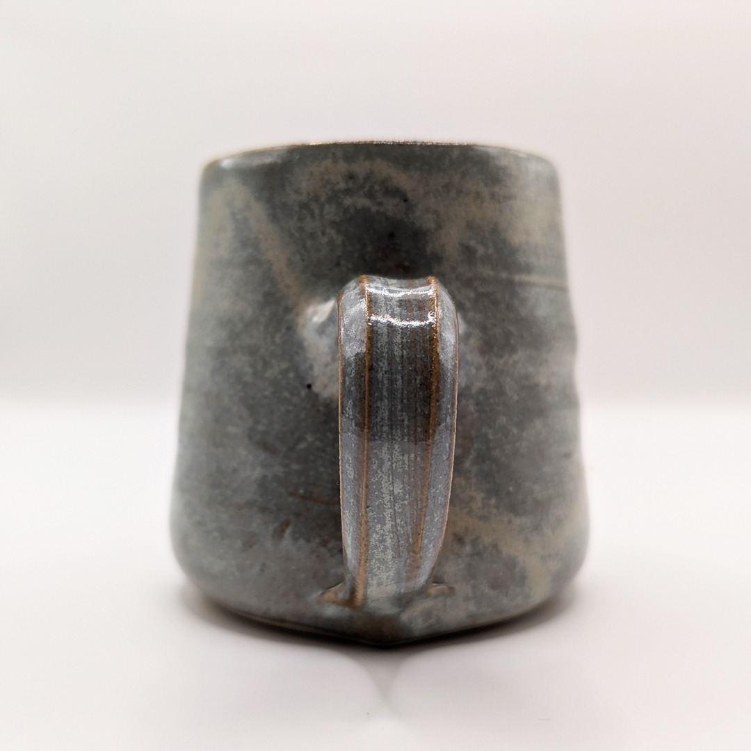 En generös mugg där vardagen får plats. Glasyrens blå skiftningar för tankarna till den klara himlen över Hälsingland, och varje mugg bär sin egen unika nyans. Formen är gjord för att ligga skönt i handen – perfekt för morgonkaffet eller en värmande kopp te när dagen behöver stillhet.
