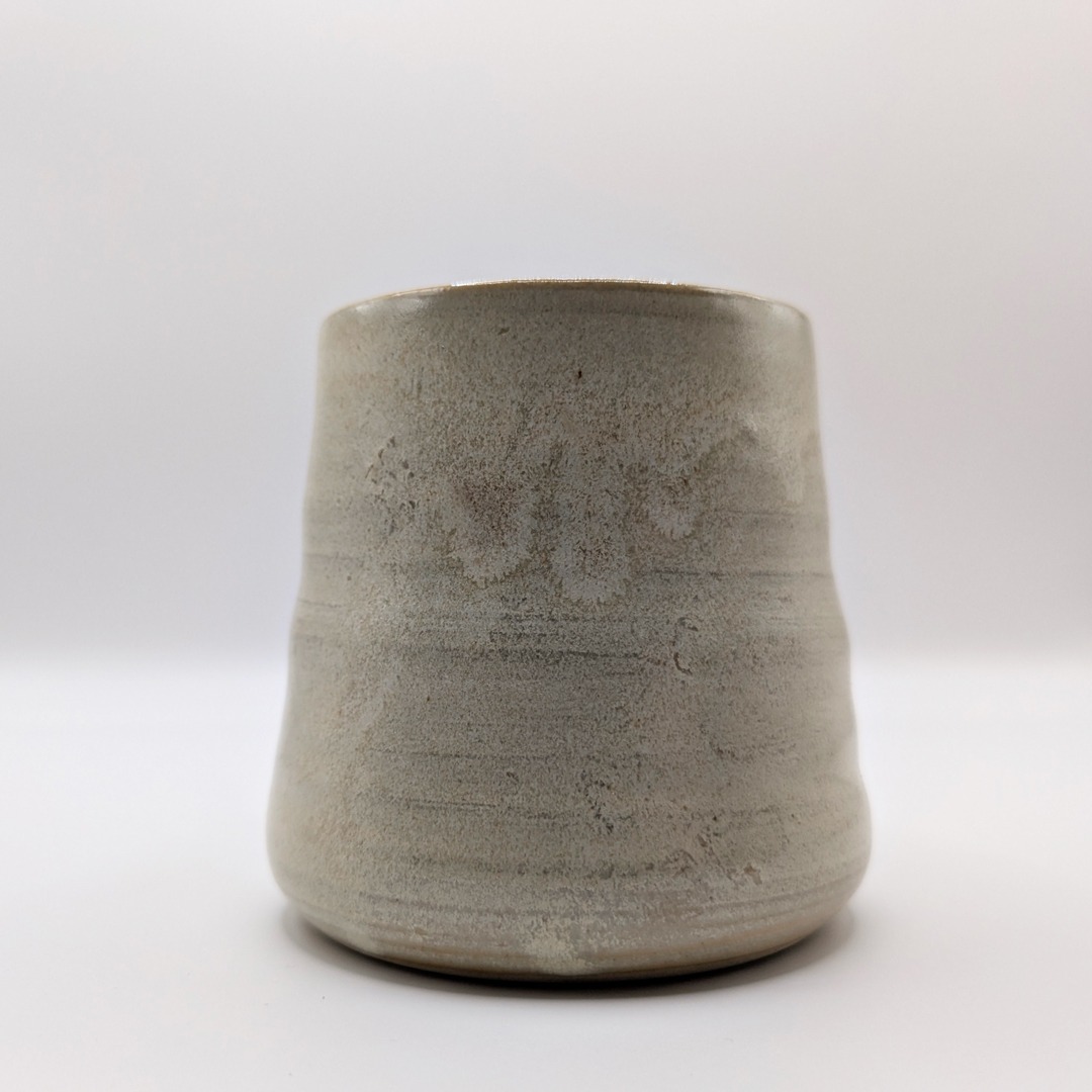 En handdrejad mugg i mjuka sandfärgade toner, inspirerad av jordens stillhet och naturens enkelhet. Den stora storleken gör den till en vardagsfavorit – perfekt för morgonkaffet, teet eller varma drycker under dagens pauser. Varje mugg har sitt eget uttryck i glasyrens skiftningar, vilket gör varje exemplar unikt. Ett robust men ändå varsamt skapat hantverk från Hälsingland.